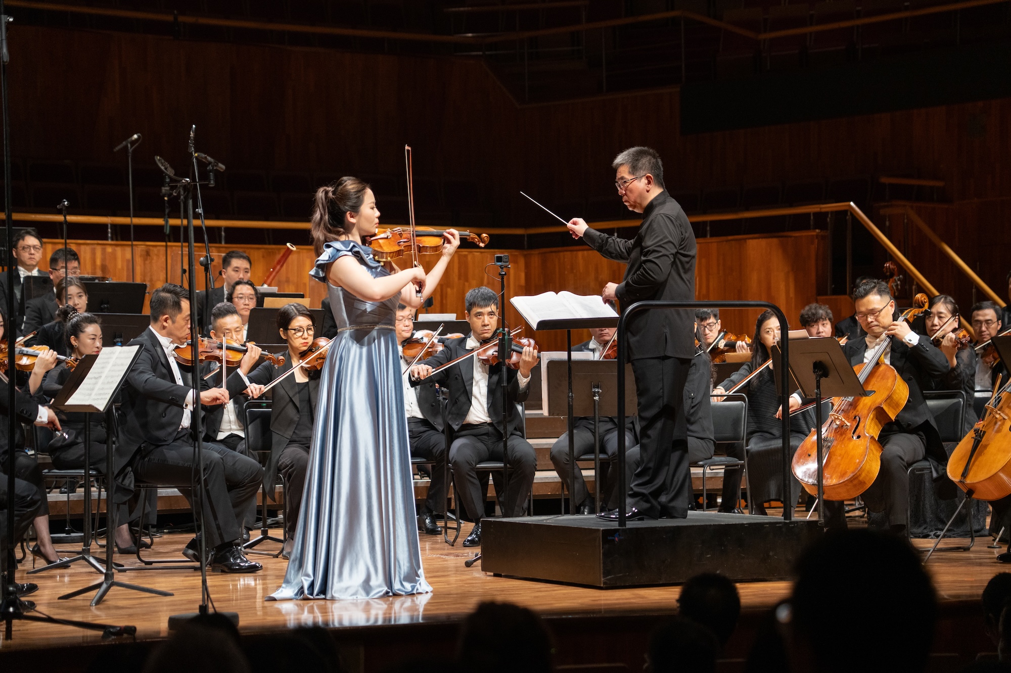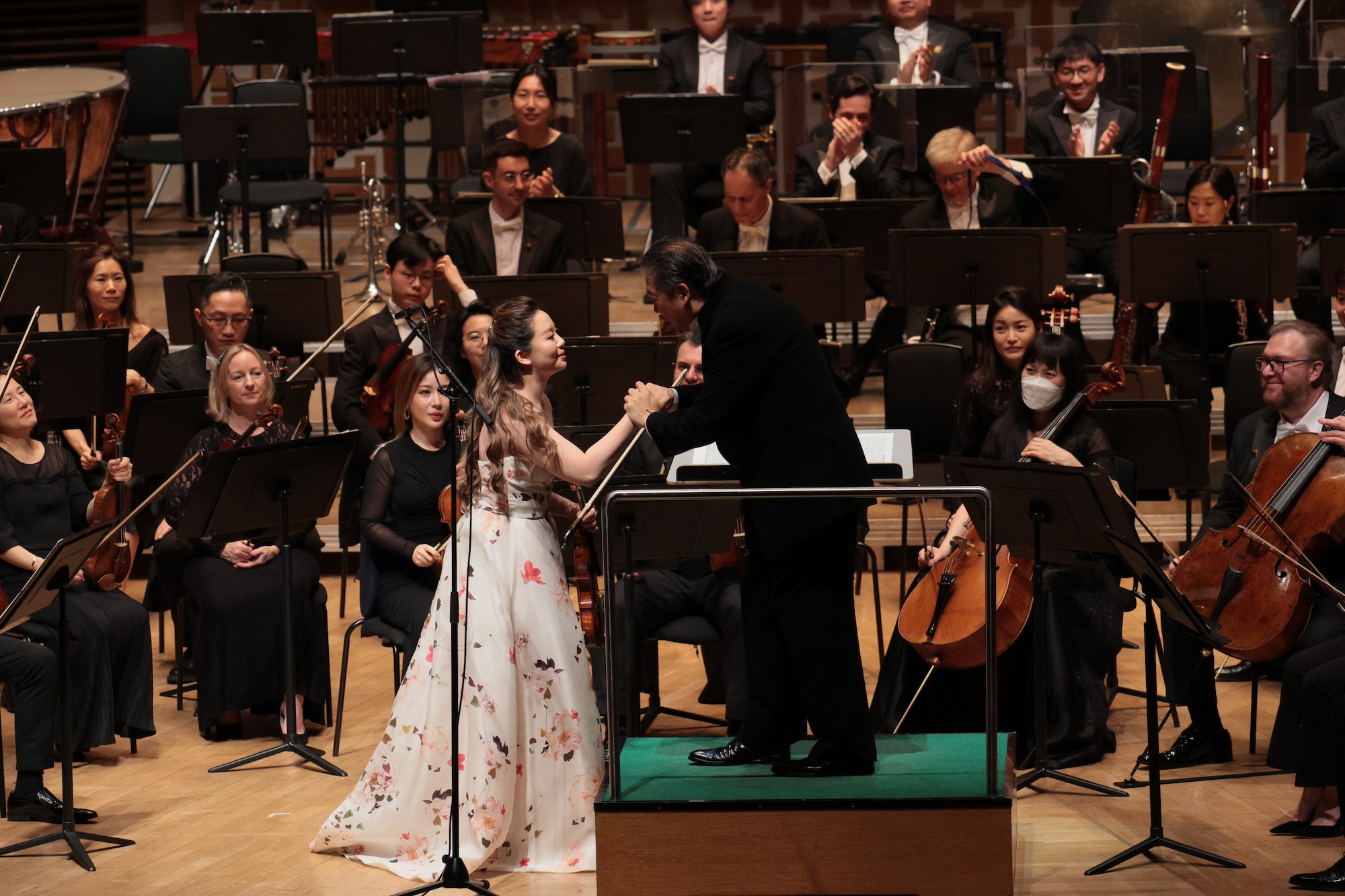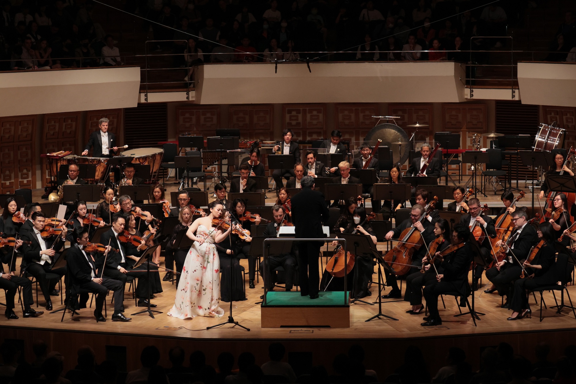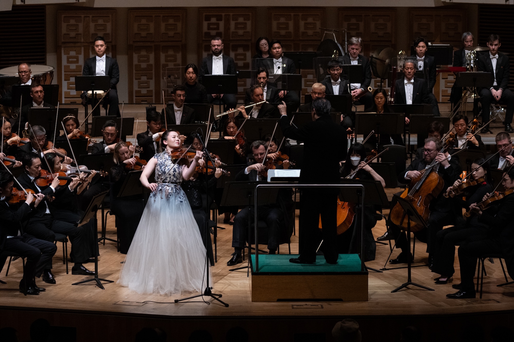 In the rare moments of break, judging by the expression on her face, she was completely submerged in the sound of the orchestra, looking at the invisible horizon.
